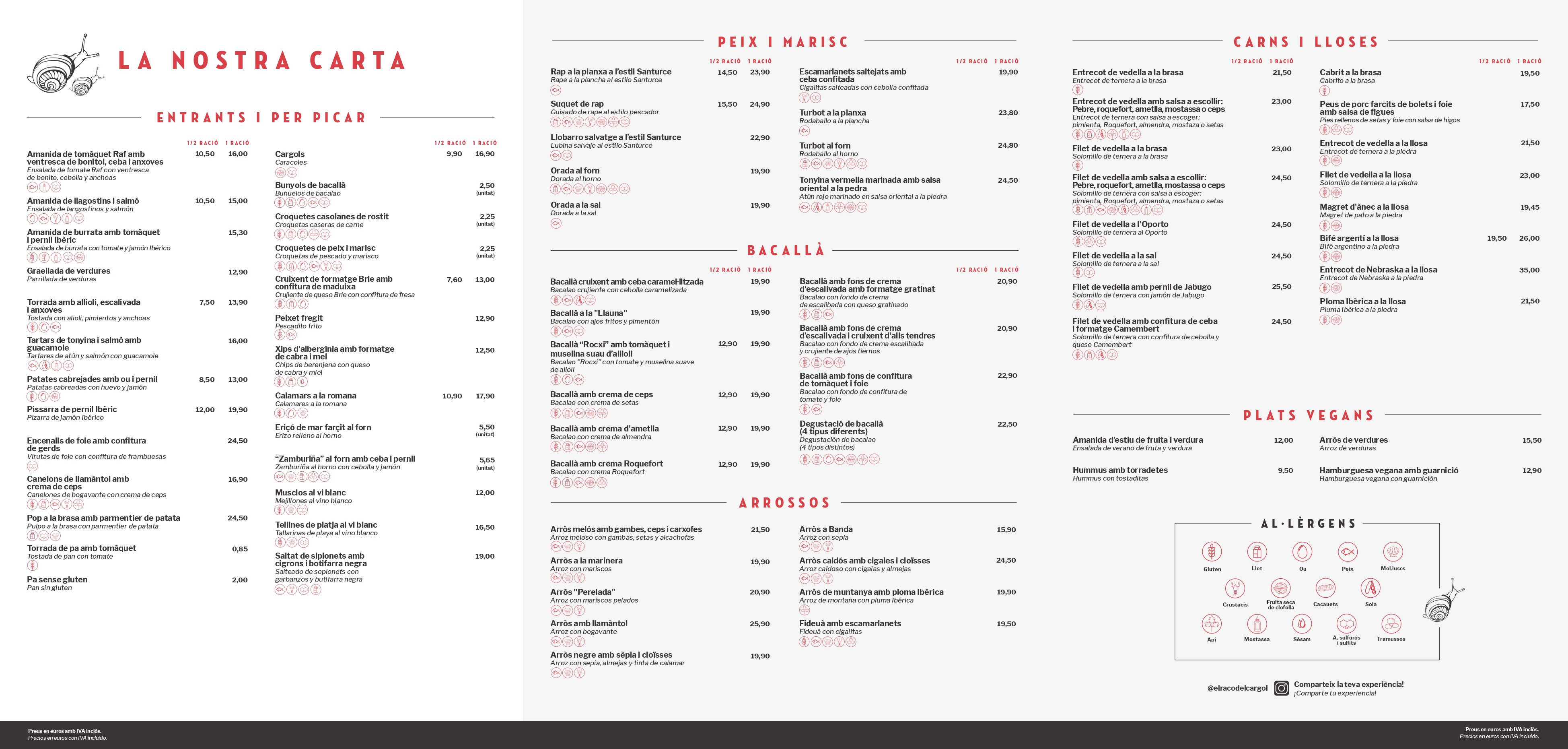 Comidas: de lunes a sábado de 13:30 a 16:00 h.