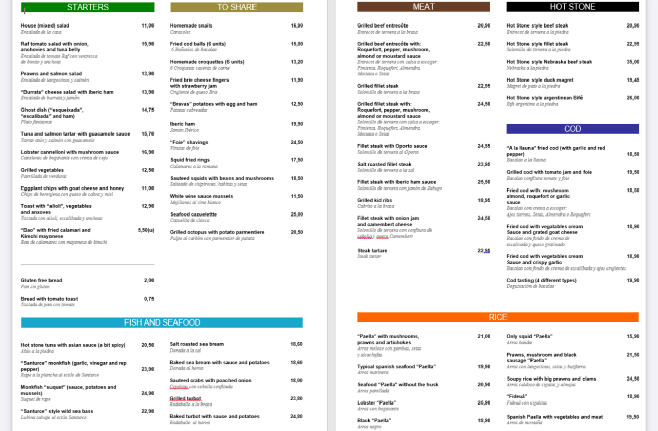 Wide culinary offer with original and modern touches, a careful wine list, and selecting our products to the maximum to obtain the best combination of quality and price!